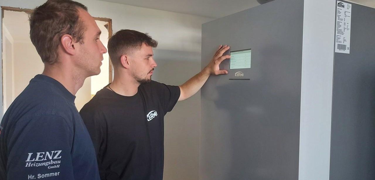 An der Inbetriebnahme der modernen Anlage arbeiteten KERMI-Servicetechniker Philipp Blüml und Installateur M. Sommer eng zusammen, um alle Steuerungsparameter präzise einzustellen. Im Zuge dieser praxisnahen Vor-Ort-Schulung erhielten die Mitarbeiter von Lenz Heizungsbau direkte Anleitung zur optimalen Nutzung der x-optimiert-Komponenten sowie wertvolle Tipps zur Wartung. Die abgestimmten Prozesse und Justierungen wurden gemeinsam dokumentiert, wodurch ein umfassendes Handbuch entstand. Dank dieser intensiven Schulung ist das Team nun versiert, selbstständig und vollständig einsatzbereit.