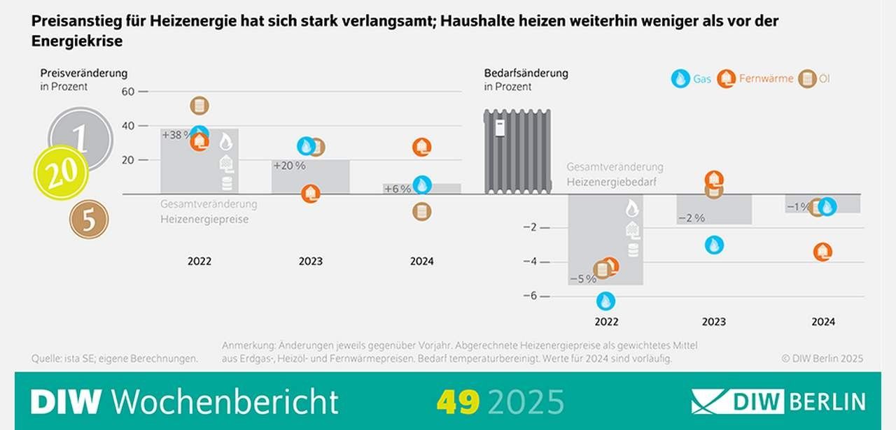 Seit 2022 deutlich abgesenkt: Heizenergiepreisanstieg 2024 nur sechs Prozent