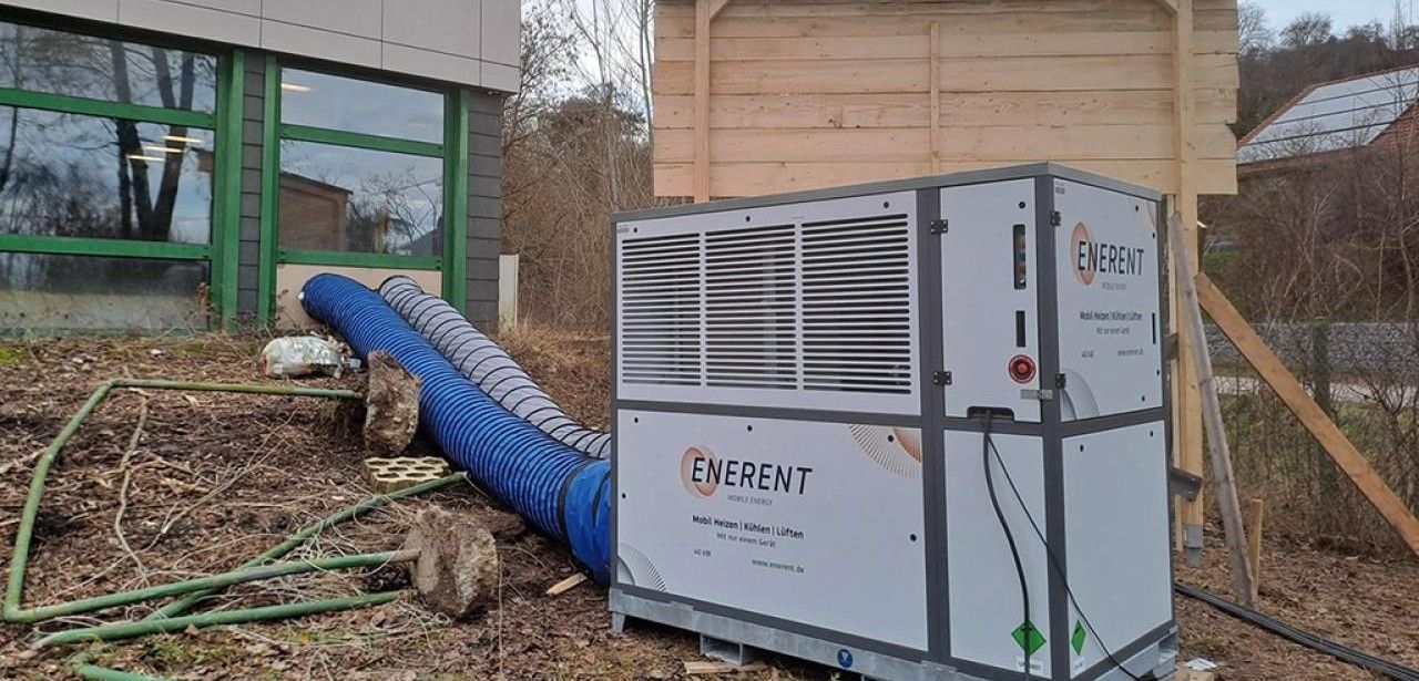 Bei Bauprojekten in kalten Jahreszeiten schützt die mobile ENERENT Luft-Luft-Wärmepumpe mit 40 kW Leistung effizient vor Frostschäden. Auf dem Gelände des zukünftigen Effizienzhauses40-Sonderpädagogikzentrums in Aschau sorgt sie für konstante Innentemperaturen ab fünf Grad. Die Installation erfordert nur Ansaug- und Verteilerschläuche, wodurch schnelle Inbetriebnahme und flexibler Standortwechsel möglich sind. Digitale Fernüberwachung per Smartphone gewährleistet jederzeit Überblick und sichert optimalen Betrieb. Das System arbeitet ohne Zwischenspeicherung und passt sich wechselnden Außentemperaturen an.
