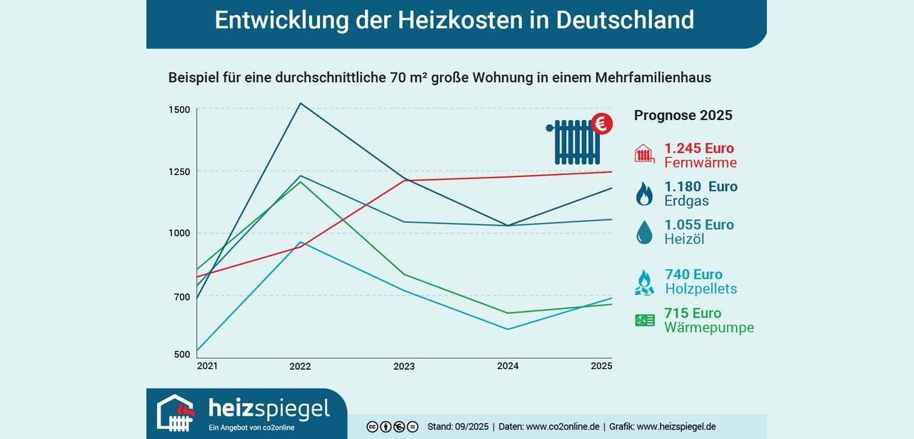 Klare Trendwende 2025: fossile Heizkosten explodieren, Wärmepumpen bleiben stabil